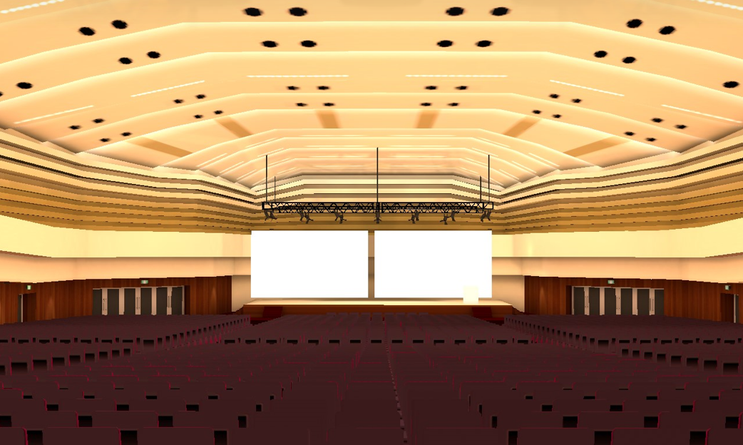 渋谷のスクランブル交差点周辺を模した最大規模の講演会場です。